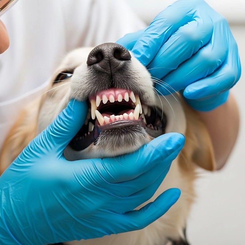 Sialoadenectomy, vet examining dog's mouth
